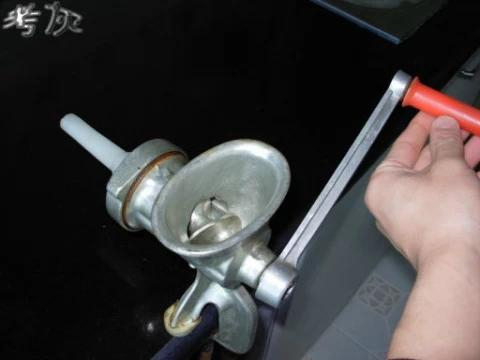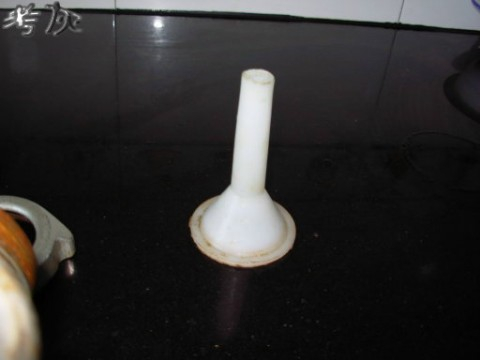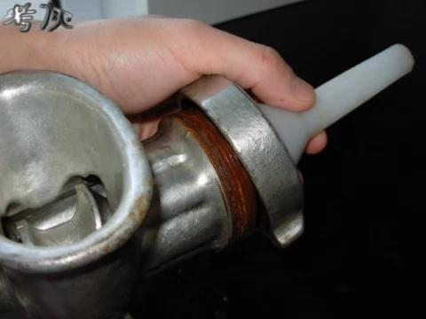 把绞刀里面的刀片拆下,装上灌肠用的塑料漏斗