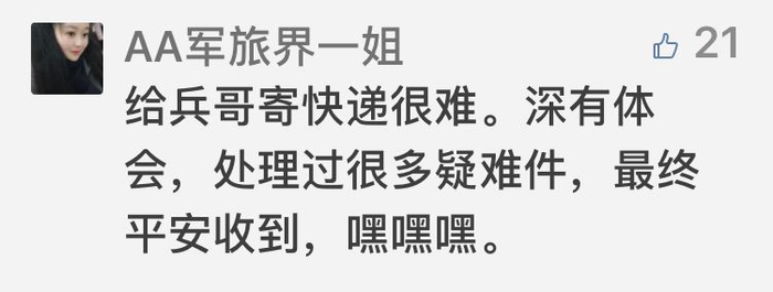 随着天气越来越冷,许多战友的驻地已经没法收快递了。