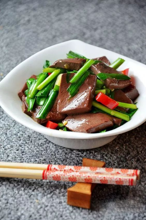 韭菜是健胃消食,补气壮阳的滋补菜,与猪血搭配,能够起到很好的补血养颜,清肺解毒的功效。