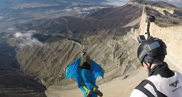 翼装滑翔即穿着翼装在空中滑翔,翼装结构可增加人体表面积,以便提高上升力。视频中,两名翼装滑翔者从山顶纵身一跃向下俯冲以获取加速度,而后伴着徐徐升起的朝阳成功飞起。飞行一段时间后,两人打开降落伞安全降落至朋友等待的地点。他们头盔上的摄像机记录下了这一刺激的滑翔过程,同时也为人们展现了落基山脉日出时的美丽景色。