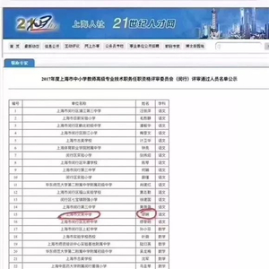 据了解,这张刷爆朋友圈的截屏来自“21世纪人才网”,题为“2017年度上海市中小学教师高级专业技术职务任职资格评审委员会(闵行)评审通过人员名单公示”。