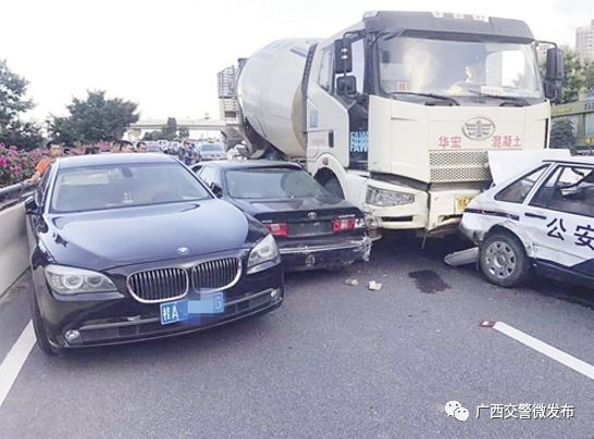 ❖案例:11车连撞!泥罐车刹车失灵撞了警车又撞9车2017年8月26日,1辆水泥罐车刹车失灵连续撞10辆车的多车追尾视频在不少南宁人的朋友圈里疯传。
