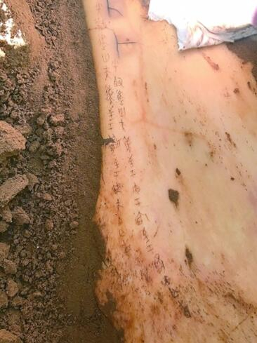 甲字形墓葬M13墓道填土中出土的有字卜骨。资料图片