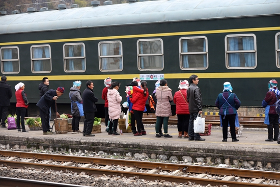 在贵阳、黔东南州、铜仁之间,有一列绿皮“慢火车”不紧不慢穿行在崇山峻岭之中,这就是往返于贵阳至玉屏的5639/5640次旅客列车。这趟列车停靠山区小站,乘客们大筐小篓、带着蔬菜水果乘车的画面,成了山区铁路交通别样的景致。5639/5640次列车开行多年,最低票价仅2元,目前仍是沿线群众赶集买卖、进城办事的重要交通工具。吴吉斌/摄(新华社发)