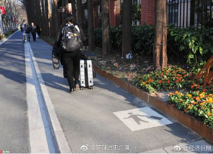 每年开学或者放假,都有很多学子拖着拉杆箱从校园周边道路走过,但道路不平就会感到非常吃力。近日,上海杨浦路政部门在政通路建成全市首条行李箱专用道。