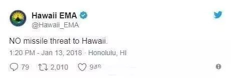当地时间13日早上8点左右,夏威夷民众的手机上突然收到导弹威胁的警报,推特上一阵混乱。就在当地民众陷入一片恐慌之后,夏威夷紧急事务管理署在推特上澄清称,没有对夏威夷的导弹威胁。美国太平洋司令部也表示,警报是误发,将尽快更正消息。