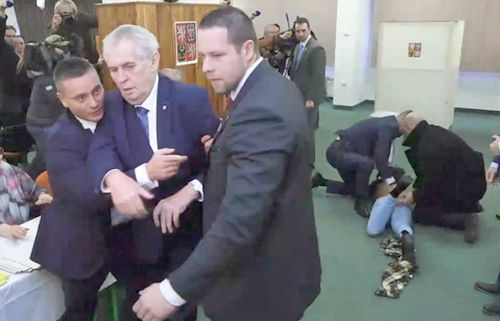 捷克总统参加大选首轮投票,遭半裸女子袭击