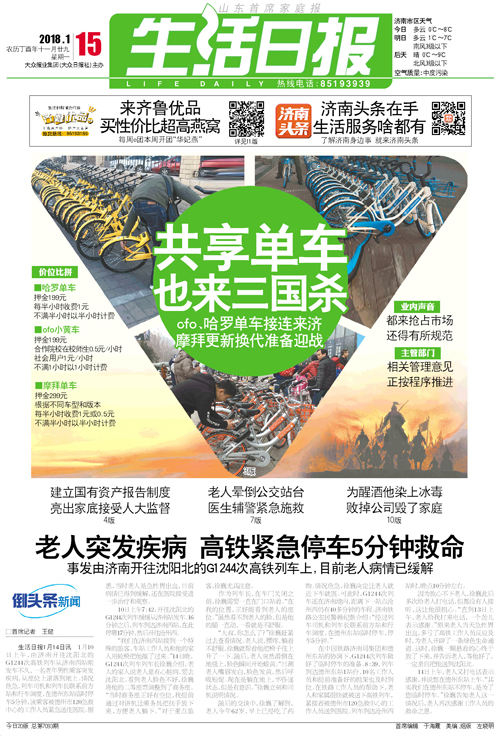 生活早报||济南共享单车黄橙蓝都有了,啥时集齐七种颜色召唤“神龙”?!