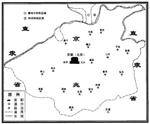 古代“京兆”之名不用后,曾在近代重现过。清朝时期,北京附近的二十四州县,由京师顺天府(京师为京号,顺天府为统县政区名)管辖。顺天府名义上属于直隶省,实际上是地位与省相当的特别区域,史称“顺直兼辖区域”。它的重要性可从官职上看出来,顺天府府尹高达正三品,与各省按察使品秩相当;乾隆帝也说府尹“体统与巡抚相等”(《高宗实录》),因此诸事可直接上奏朝廷。辛亥革命后,1912年4月中华民国临时参议院决定建都北京,仍称“京师顺天府”。次年1月,北洋政府颁布《划一现行顺天府属地方行政官厅组织令》,规定该府辖区及其与直隶省的关系,一切如旧,首长继续称府尹。