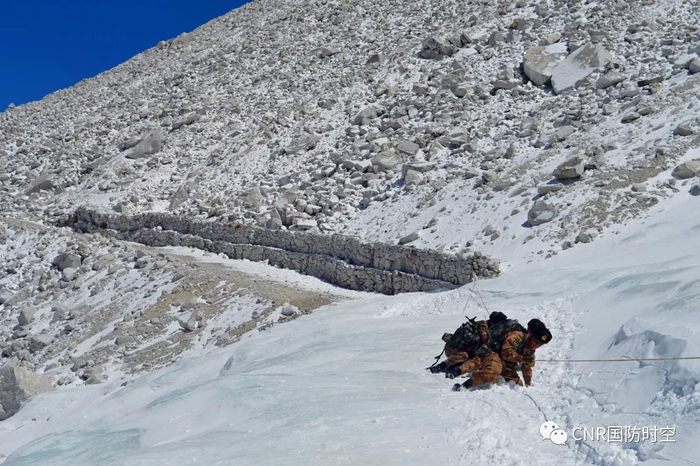 巡逻再险,也要涉险。官兵们走在平均海拔5000多米几乎无路可走的巡逻道上,前方是深渊,身后是暗河;行走在冰川之间大家都会用巡逻绳把每名官兵连接起来,每走一步都是艰难前行;走在陡峭的山脊上,那些看似山体形状的山脊是乱石覆盖的千年冰川,蹲下细听,隐隐约约还能听见流水声,左一脚右一脚,每一步都要踩实,一不小心踩空就会滑进致命的冰窟窿里,身体越陷越深,随时可能失去生命。曾在一次巡逻途中,一名战士不慎踩空掉入冰窟窿,幸好身后背的枪卡在洞口,把他从鬼门关拉了回来。