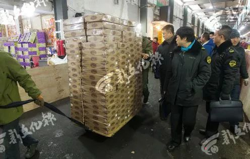 随后,几名执法人员通过翻查账本记录发现,每盒"提拉米苏"的销售价为40元。由于暂时联系不上老板,商户资质还有待于进一步确认,执法人员随后将该档口44箱货物现场查封带走,以待进一步调查,并追究相关人员责任。