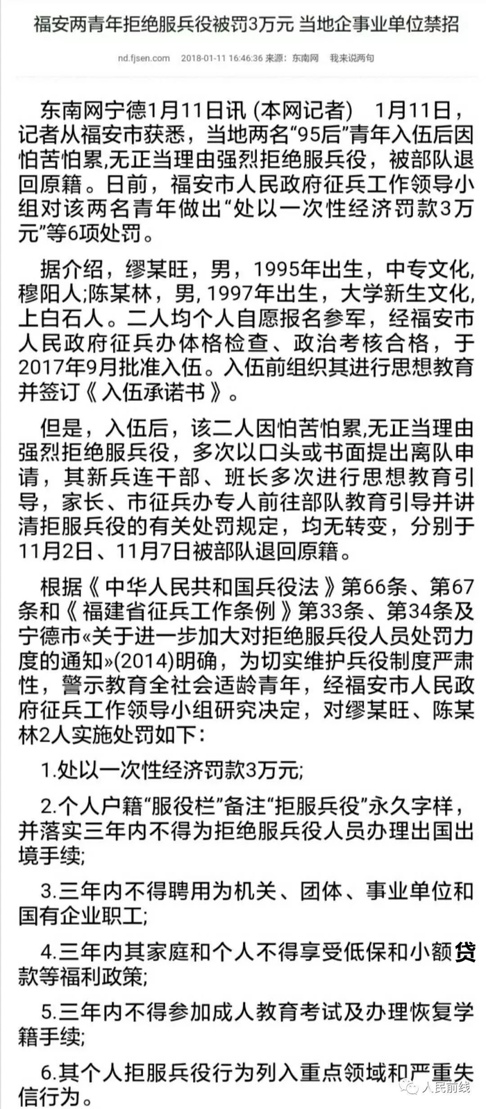 然而,就在这样一个被青春激情点燃的季节,网上一则关于对两名拒绝服兵役新兵的处罚通告同样刷屏了↓↓↓