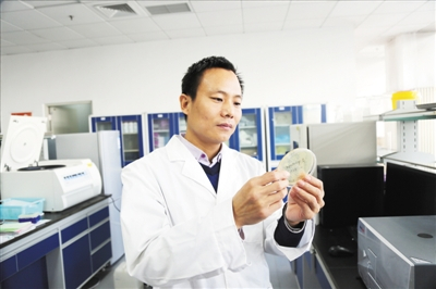 | 2017年12月30日,孙周通在实验室查看生物酶培养结果。 受访者供图 |