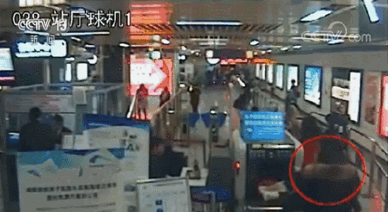监控画面显示,当天下午6点35分,一名黑衣女子将随身携带的包放入安检机,随即安检员朱小康从显示器图像中发现异样。