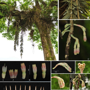 杜鹃花科树萝卜属植物全世界约120余种,喜马拉雅地区是其分布中心。目前为止,缅甸记载有树萝卜属植物58种,包含近年来中国和日本学者命名发表的3个新种和1个新变种。随着野外科考和采集的深入,一些新的类群将被陆续发现并被科学认识。树萝卜属植物常为附生常绿灌木,通常具有膨大纺锤状的根状茎,形似“萝卜”,因而冠名为树萝卜;该属大多数种类的花具有鲜艳管状花冠,花冠下垂,花期较长,具有极高的观赏价值和开发潜力。