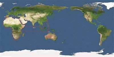 和平方舟首次环非洲访问航迹图 (逆时针方向)