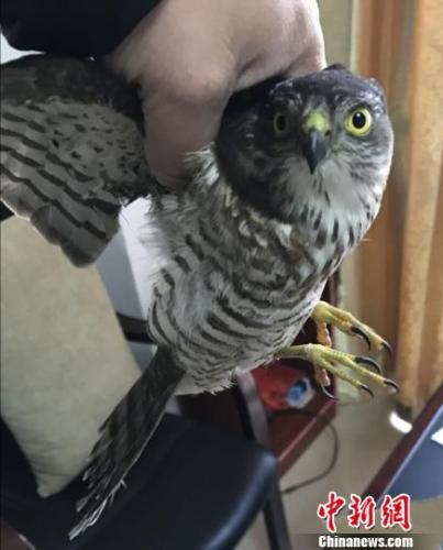 中新网南昌1月15日电 (张笠 记者苏路程)江西南昌一市民日前救助一只受伤的日本松雀鹰。南昌市湾里区林业局消息,该日本松雀鹰已于15日送往江西省野生动物救助中心救治。