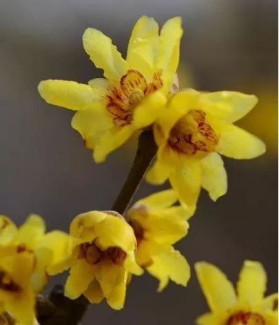 据《本草纲目》记载:“蜡梅,释名黄梅花,此物非梅类,因其与梅同时,香又相近,色似蜜蜡,故得此名。”