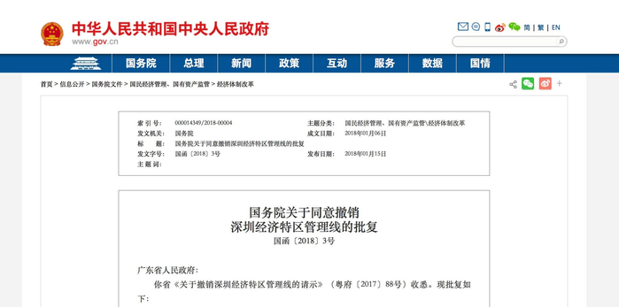 原标题:国务院批复了!撤销深圳经济特区管理线