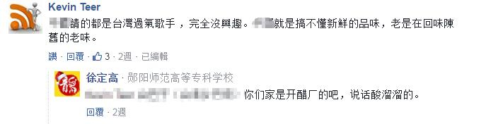 通过两岸跨年的明星阵容其实不难看出,几乎所有炙手可热的一线明星都选择到大陆演出,但有些台湾网友似乎不这么认为,“大陆请的都是台湾过气歌手,他们就是搞不懂新鲜的品味”,结果被怼是“开醋厂的”、“井底之蛙”。