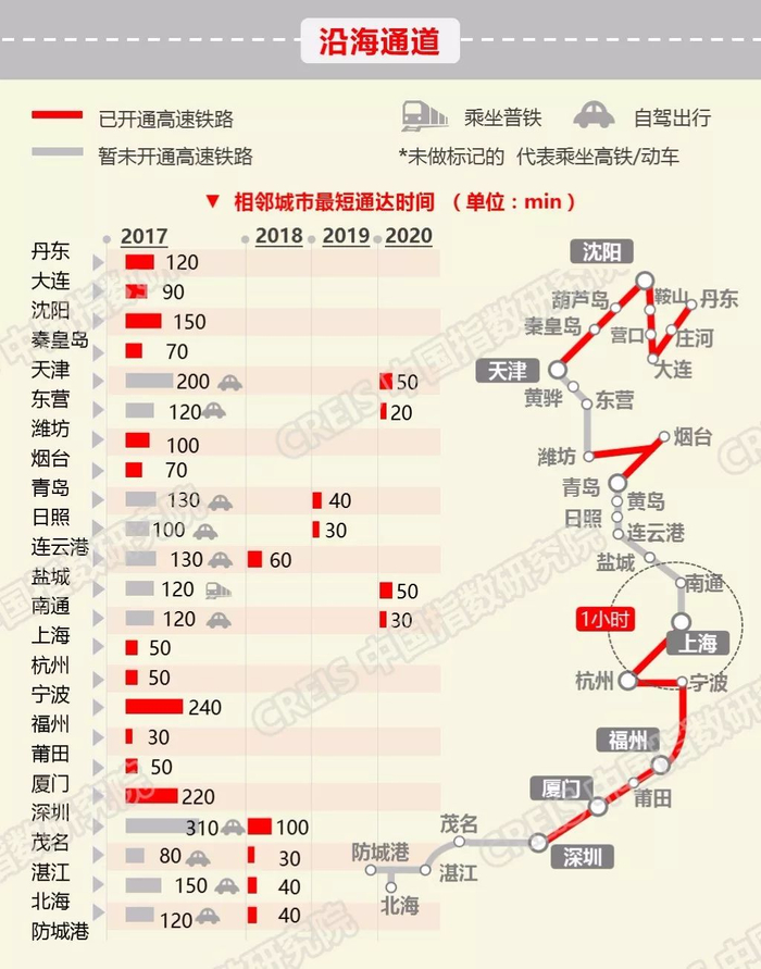 1. 本文使用数据来源于CREIS中指数据、CREIS中指·城市地图、12306官网。