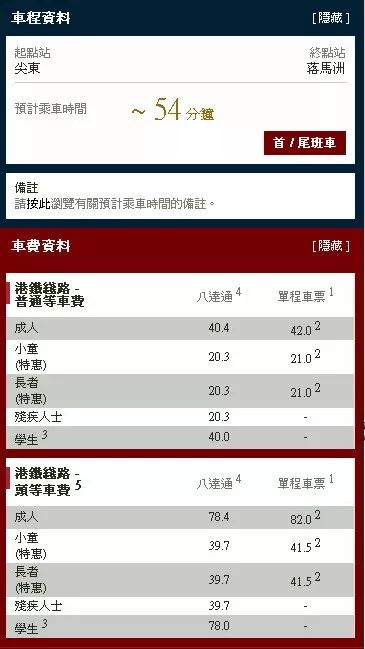 单程头等车票为82港币