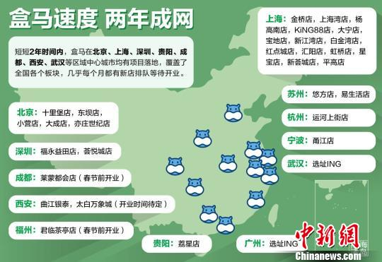 自2016年1月第一家盒马门店在上海开业以来,在短短2年时间内,盒马迅速在全国铺开,涵盖了华北、华东、华南、华中、西南、西北六大区域。“全国连锁主干网络的成型,将让盒马更容易在各个区域开花散叶,并持续放大规模效应。“盒马工作人员告诉记者。