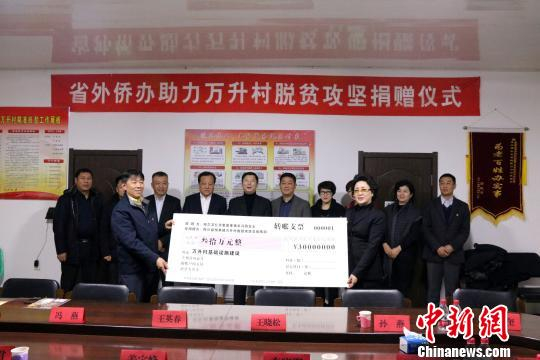 中新网哈尔滨1月16日电 (记者 王琳)16日,由黑龙江省外事侨务办公室发起的“侨务扶贫桦川行”在佳木斯市桦川县悦来镇万升村举行,该省侨商代表、省侨商会会长冯燕现场个人捐赠30万元人民币,将侨界建设家乡的爱心足迹绵延至这座贫困小村。