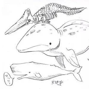菊石君怒赞Ent之时,长鲸吟在一边乐:“菊石君是我偶像。”不为别的,他研究鲸豚目,而菊石君历时十年,把全世界的鲸和海豚都画了一遍。