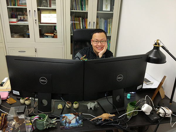 本科三年级时为了画好三趾马,他发邮件给IVPP的老师请教。没抱太大希望,未料几位老师都回信了,还夸他小小年纪问题专业。“对于小孩挺鼓舞的。”他笑着回忆。机缘巧合,几年后其中一位老师去美国参加古脊椎动物年会,看到外国专家做的报告PPT中用了他的图,回来便问他:愿不愿意来我这里干活?