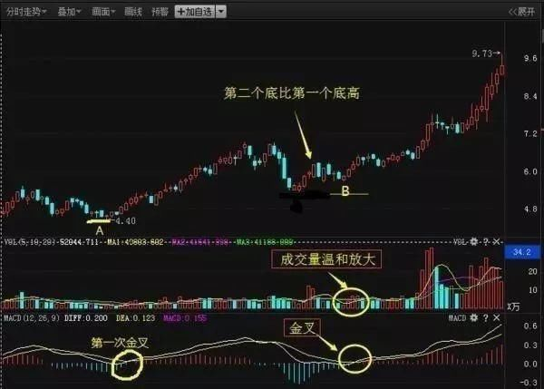 3、MACD金叉时,成交量要出现温和放大。