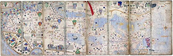 © Bridgeman Images 亚伯拉罕·克莱斯克斯绘制 《加泰罗尼亚地图》 1375年兽皮纸彩绘法国巴黎国家图书馆