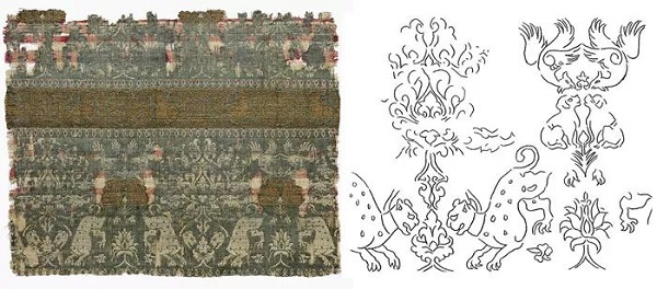 ©Foto d'arte Firenze - Cristian Ceccanti 织金锦 14世纪下半叶 意大利佛罗伦萨巴杰罗国家博物馆藏 线描图徐紫迪绘