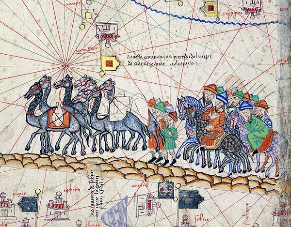 © Bridgeman Images《加泰罗尼亚地图》(局部)欧亚大陆商队向东行走