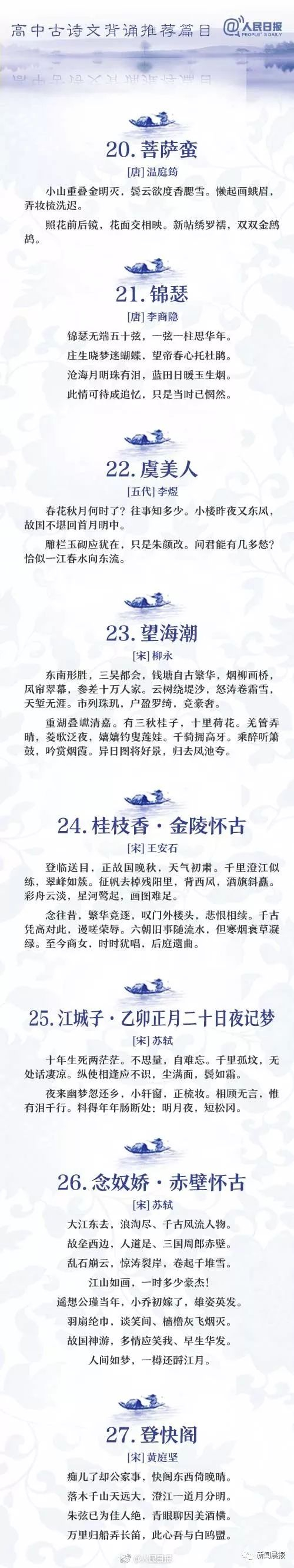 @沉迷卡色:作为一个高中生,我觉得多积累一些古诗词是有必要的,而且诗歌背景这些老师上课都会讲,再加上老师讲解的翻译,只要认真听,想背下来很容易。
