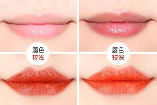 使用口红叠加后也会产生不同效果,唇色深浅显示的颜色也不同