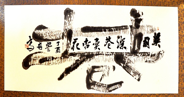 这次展览共展出27幅赵翼舟先生近十年来的代表作品,既有草书王维诗《桃源行》这样的经典创作,也有《万法归一》、《凤凰涅槃》等创意写意之作。