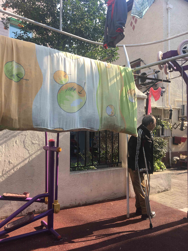 通过和居民展开若干次意见征询会,李彦伯发现居民最需要的两个设施是晾衣和健身。但这两种功能都很大程度受到天气的影响,天气适宜的时候居民既可晒衣又可运动,一旦下雨两者都无法进行。根据历史统计,上海一年有一小半的日子有降雨,而且夏天极端高温天气占近一个月,真正适宜户外活动的天数并不多。所以李彦伯就想为这个场地设计一个户外的覆盖物,既可遮雨又可遮阳。