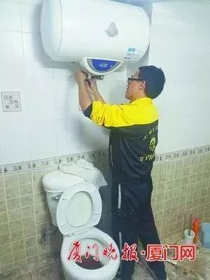 周师傅进门后,先切断了电源,关闭总阀,卸下热水器的冷水管,排空热水器里的水。