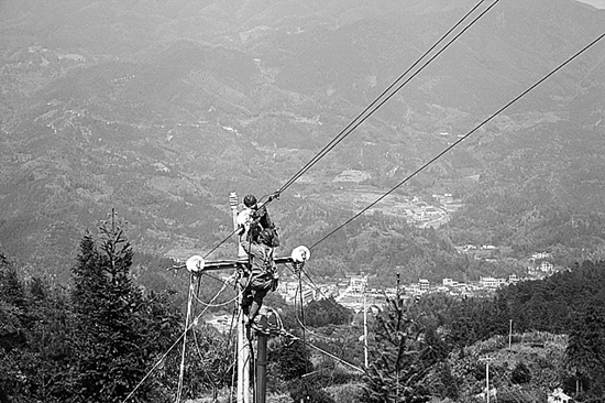 国网郴州供电公司脱贫摘帽农网改造工程施工过程中,电力员工正在桂东县桥头乡顺义村施工作业  张恺姣/摄