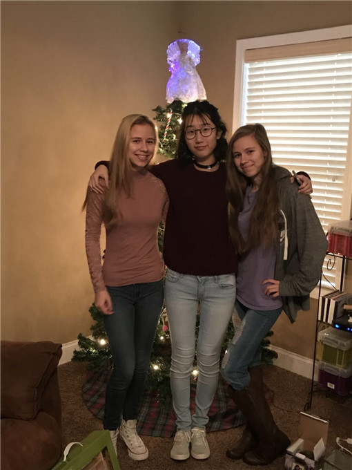 第三届交换生汪子睿(中)和美国同学在一起