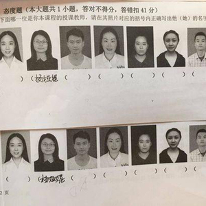 1月15日,四川文化传媒职业学院思修课期末考试中一道“态度题”引起考生议论纷纷。这道题目要求学生“选出你本课程的授课教师,请在其照片对应括号内正确写出名字”,答对不得分,答错扣41分。