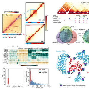 真核生物中基因组的三维折叠在基本的生物学过程中,如细胞分化、转录调控、基因组复制及DNA修复,发挥了重要作用。鉴于真核生物中生物学基本过程的普遍保守性,研究人员一直推测基因组三维空间折叠的基本特征应该也是保守的。然而,果蝇基因组结构的研究发现,哺乳动物细胞中所发现的基因组重要结构特征之一,即拓扑结构域(TAD; topologically associated domains)是由复合蛋白CTCF及cohesin所定义,在果蝇中似乎并不成立。那么,这是否意味着昆虫和哺乳动物是通过不同的机制来构建TAD这一基本结构单元呢?这一问题的解决不但具有基本的生物学意义,也会为果蝇作为模式动物在染色质生物学中的应用提供了重要基础。