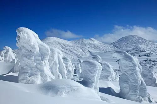 八甲田本就是日本百座名山之一,而每到冬季,又因它乃世界上屈指可数的大降雪区域,山上树木挂满冰雪形成的“树冰”,更是日本东北地区最具代表性的神奇景观。
