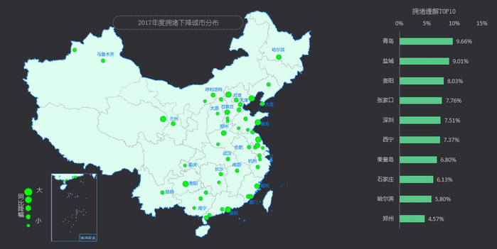 超大和特大城市整体拥堵趋势在2017年有所缓解,