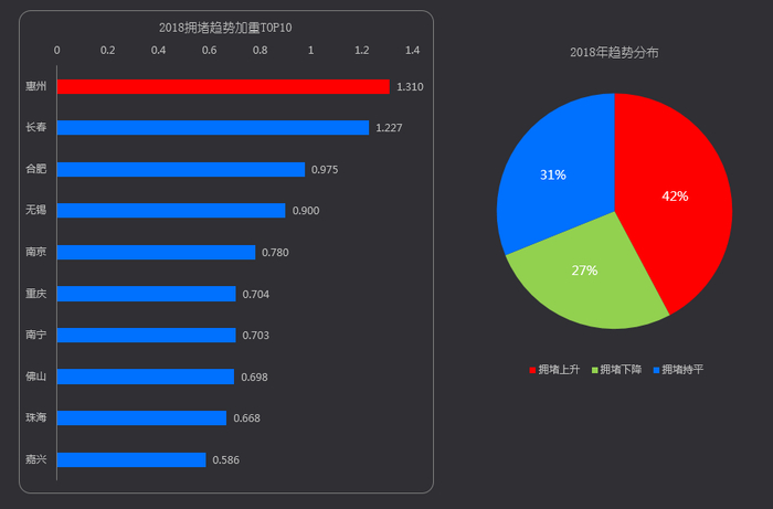 2018拥堵趋势预测:58%的城市拥堵呈现下降或持平