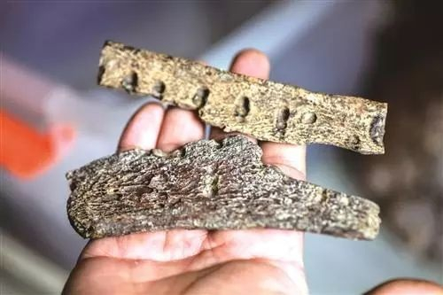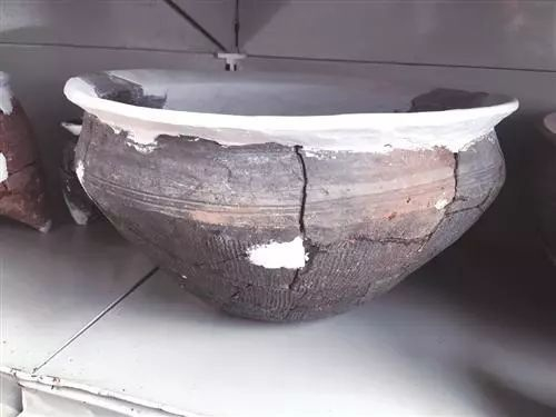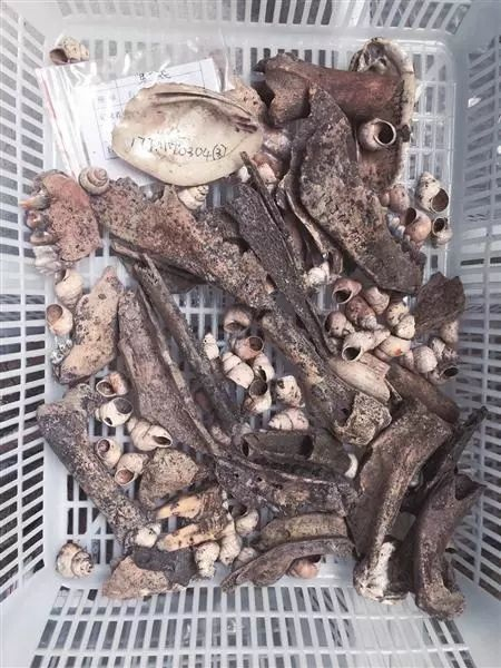 在几个陶罐底部还出土了多种碳化的谷物颗粒,以及大量鹿角、蚌壳、螺壳、兽牙等物。这说明当时的人们已经过上农耕渔猎生活,可烧煮食物。难得的是还出土了古人占卜用的卜甲一枚、卜骨两枚,尽管卜甲、卜骨上都没有文字,但上面的烧灼裂痕和钻孔痕迹,表明它们都是曾被占卜使用过的。