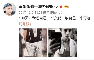 功夫不负苦心人,第一个月,游乐乐减重了20斤,第二个月,游乐乐减重了40斤。11月27号,也就是游乐乐开始减肥的三个月后,他的体重跌破了100斤。“其实,我一开始没想减那么多的,就是一直觉得效果不明显,从减20斤开始,一点点增加。那天早上我被自己吓坏了,从那时起,我就停止减肥了,开始增肌,现在的体重大概是110斤左右。”游乐乐说。