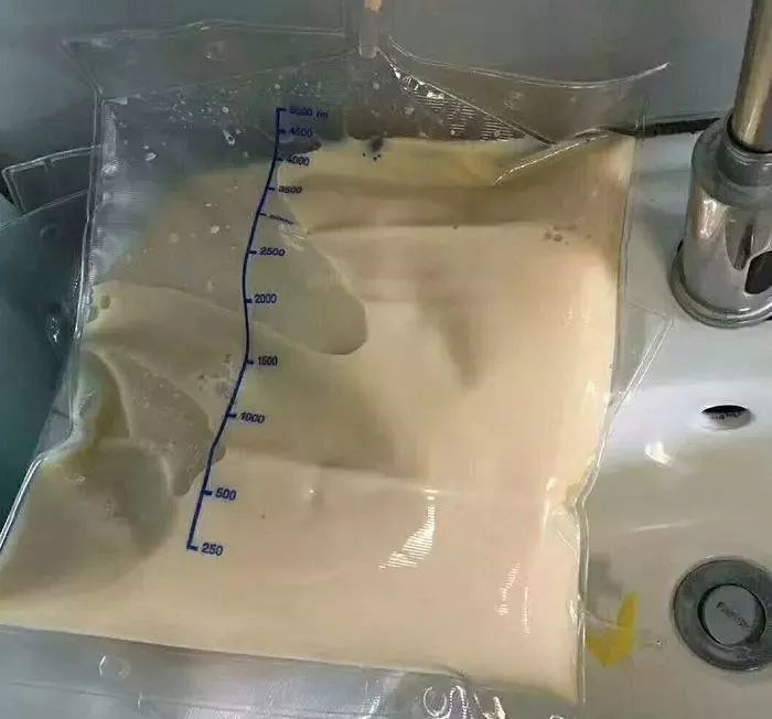 当晚,2000毫升的血浆被送到ICU。对高脂血症引起的急性胰腺炎,最有效的治疗方法就是将患者血液里的油脂给置换出来。正常的血浆颜色为淡黄色,但从小萍体内置换出来的2000毫升血浆却是奶白色,就像冻住的猪油一样。“这样的血在体内,就会堵住血管。”医生说。