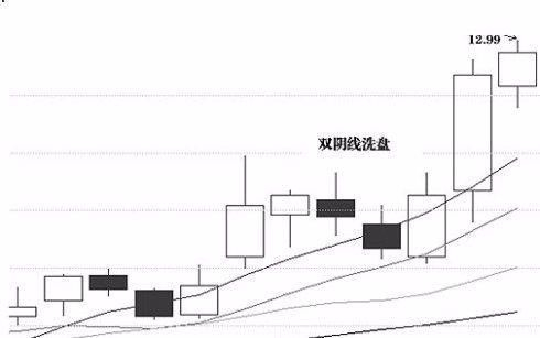 2、双阴线洗盘法(1)筹码比较分散。(2)在一个月的调整周期结束以后,持续拉涨。(3)庄家故意制造放量阴线来吓跑散户,从而收集筹码。(4)大阴量K线其震幅(最高价与最低价价格差)全在4个点之内。(5)识别该类做盘手法其实也不难,一般主力为了收集筹码即使量能放大但跌幅不大,走的是有量无价的走势。